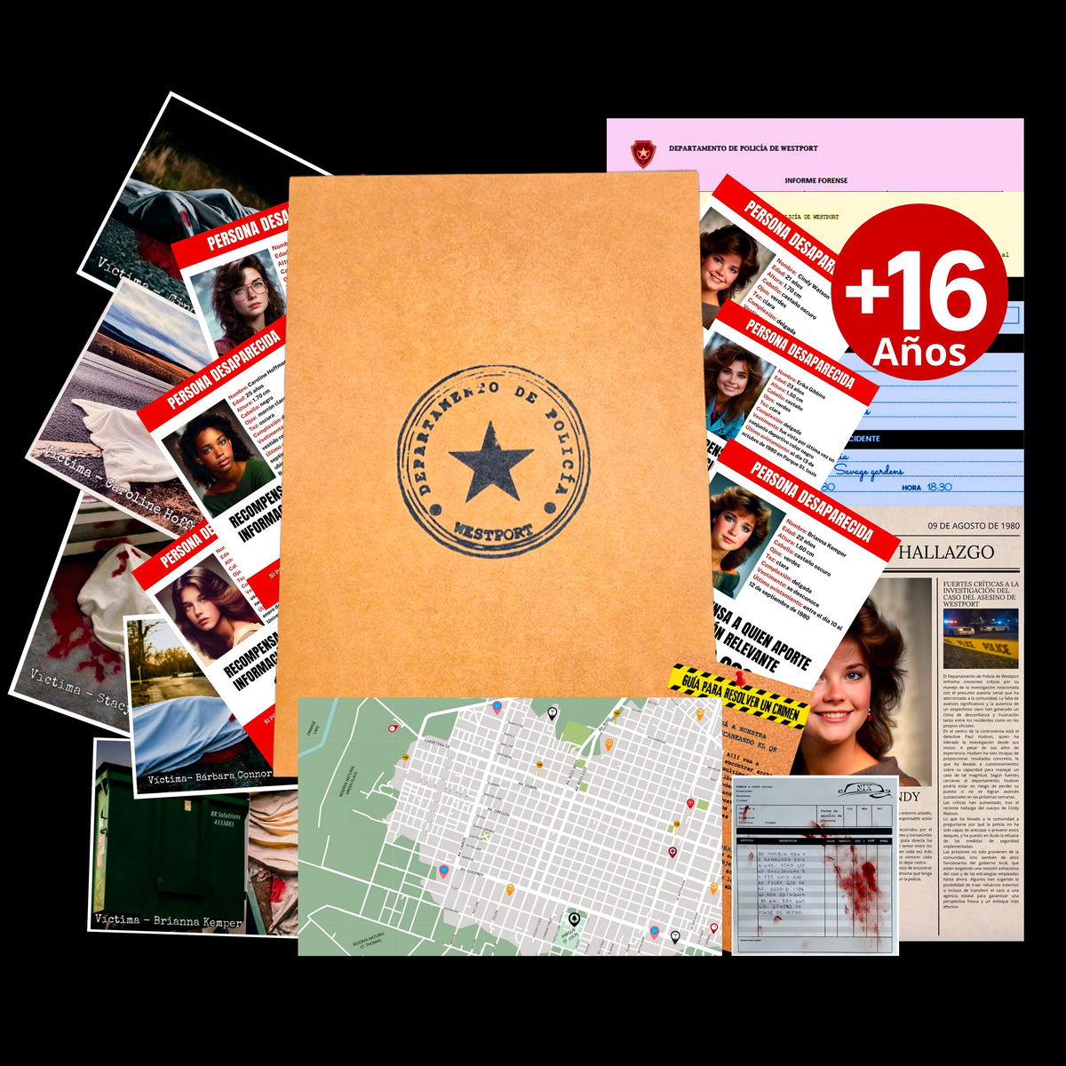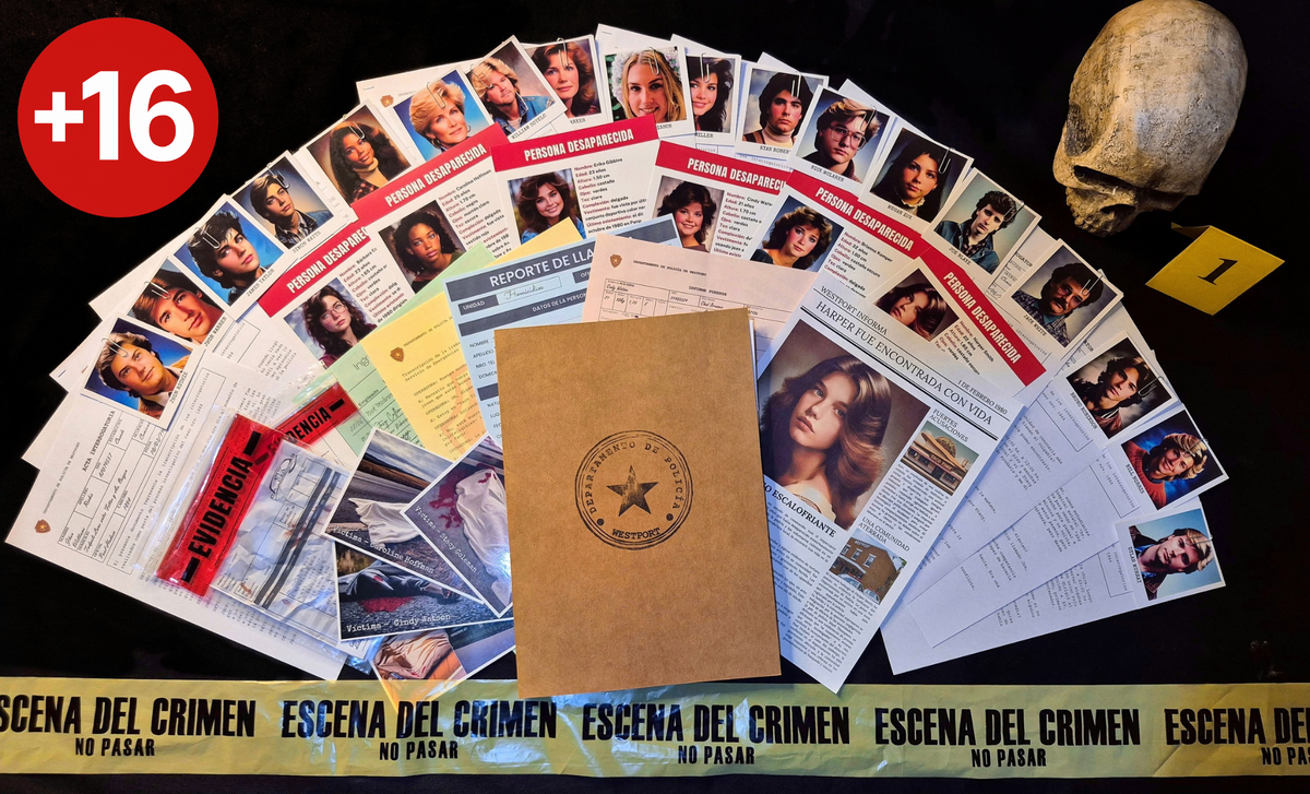 | Las imágenes proporcionadas del producto no representan la totalidad de la documentación del caso. El juego contiene más archivos e ítems, que solo podrá visualizar cuando posea los expedientes en sus manos, garantizando asi, una experiencia de investigación completa |